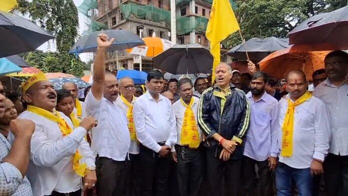 रत्नागिरी:- मराठा समाजाला कुणबी दाखले देऊन ओबीसी आरक्षणात समाविष्ट करण्याच्या कथित प्रयत्नाविरोधात रत्नागिरीत ओबीसी-कुणबी समाजाने सोमवारी (१५ सप्टेंबर) तीव्र निदर्शने केली. कुणबी समाजोन्नती संघ, मुंबई यांच्या नेतृत्वाखालील या आंदोलनात रत्नागिरी तालुक्यातील शेकडो ओबीसी-कुणबी बांधव, महिला आणि विद्यार्थ्यांनी मोठ्या संख्येने सहभाग घेतला. जयस्तंभ येथून सकाळी १० वाजता सुरू झालेल्या या शांततापूर्ण मोर्चाने रत्नागिरी तहसीलदार कार्यालयापर्यंत पायी चालत जात, आपल्या मागण्यांचे निवेदन तहसीलदारांना सादर केले.