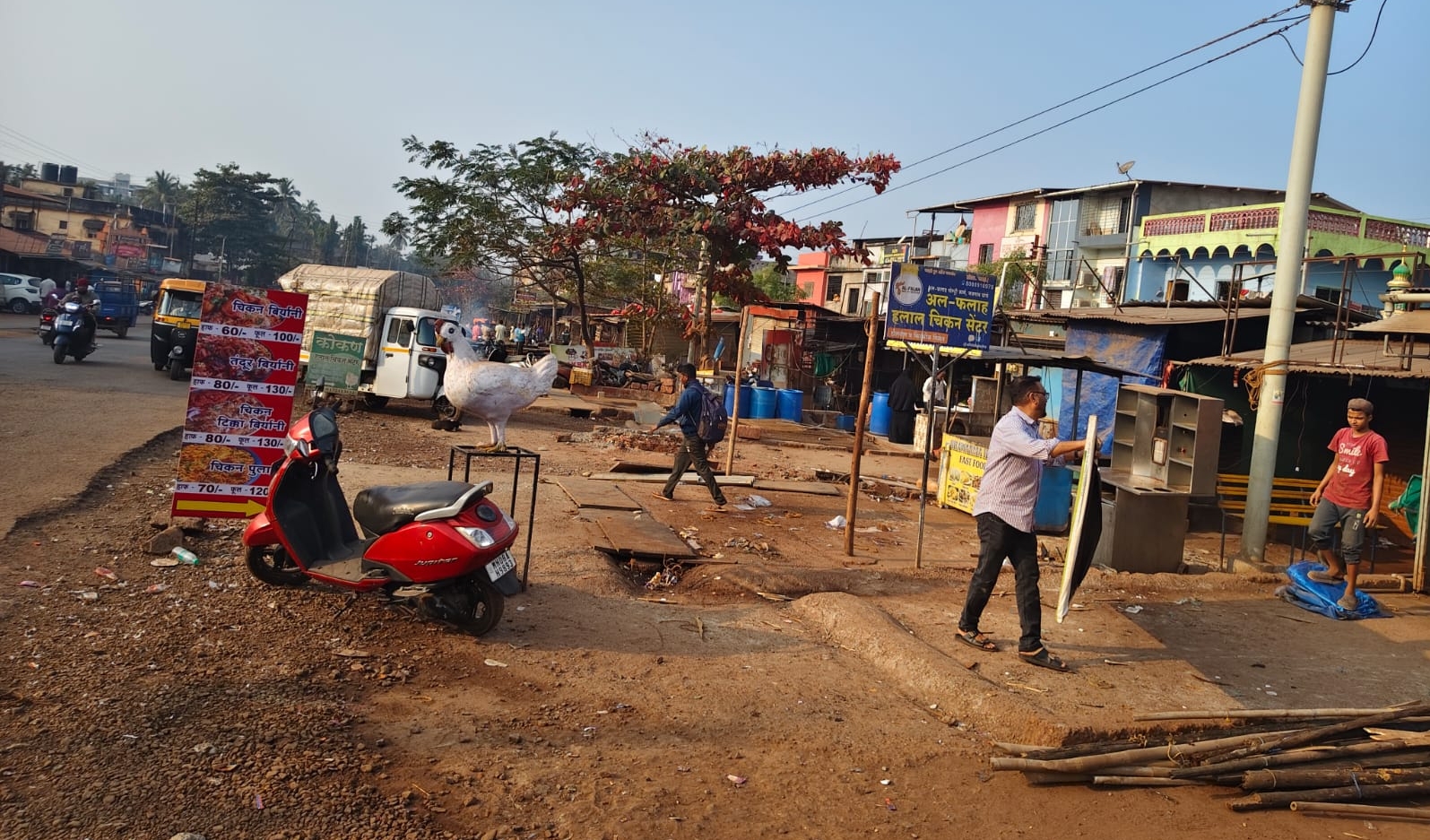 कोकण नगर येथे रस्त्यावर अतिक्रमण करणाऱ्या बांधकामांवर बुलडोझर