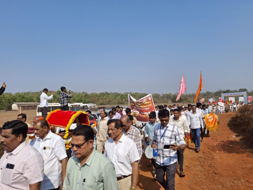 चिपळूण:- कोकणातील नमन, संकासूर, लेझीम पथक, पारंपारिक वेशभूषा, वारकरी व भक्तीमय देखावे साकारत चाललेली ग्रंथदिंडी पालवण पंचक्रोशीत दुमदुमली. जिवंत देखावे व लोककलेतून भारतीय सस्कृतीचे दर्शन देखील यानिमीत्ताने घडले. साहित्यीक, कृषी व सहकार क्षेत्रातील अनेकांनी या ग्रंथदिंडीत सहभाग घेत मोठ्या उत्साहात पालवण येथील ग्रामीण, कृषी, सहकार मराठी साहित्य संमेलन २०२६ चा शुक्रवारी मोठ्या उत्साहात शुभारंभ करण्यात आला.