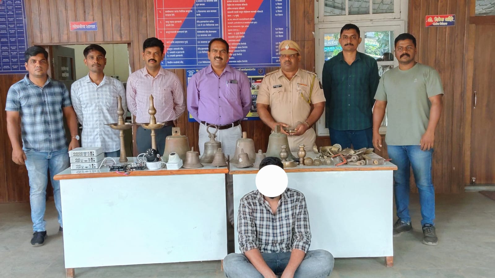 या दोघांनी मंदिरातून चोरलेल्या धातूच्या पितळी घंटा व अन्य ऐवज हिरालाल गंगारामजी कुम्हार याने घेतल्याचे पोलीस तपासातून उघड झाले आहे. आणखी ऐवज पोलिसांच्या हाती लागण्याची दाट शक्यता आहे. आणखी काहींचा सहभाग असण्याच्या शक्यतेने पथकाने तपास गतीमान केला आहे. या पथकात पोलीस उपनिरीक्षक रोहिदास केंद्रे, पोलीस कॉन्स्टेबल अजय कडू वैभव ओहोळ, विजेंद्र सातार्डेकर, कृष्णा दराडे, शिरीष साळुंके यांचा समावेश आहे.