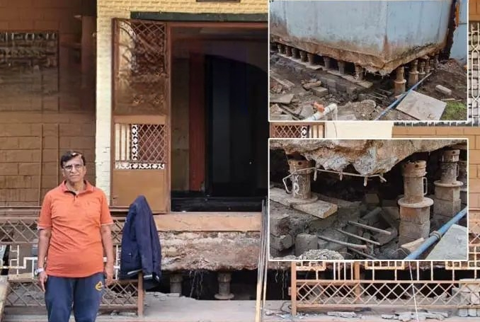 चिपळूण:- चिपळूण शहराला गेली २५ वर्षांपासून कायमस्वरुपी पुराचा धोका निर्माण झाला आहे. २०२१ मध्ये तर महापुराने सर्वाधिक उंची गाठली. त्यावर मात करण्यासाठी प्रशासन व लोकप्रतिनिधी वेगवेगळ्या उपाययोजना करत आहेत. आता नागरिकांनीही वैयक्तिक पातळीवर उपाय सुरू केले आहेत. शहरातील खेंड येथील प्रमोद वेल्हाळ यांनी घराचे बांधकाम न पाडता १५० जॅकच्या सहाय्याने मूळ बांधकाम सहा फूट उंच करण्यास सुरुवात केली आहे. पहिल्या टप्प्यात ते सव्वा दोन फूट उंच झाले आहे.