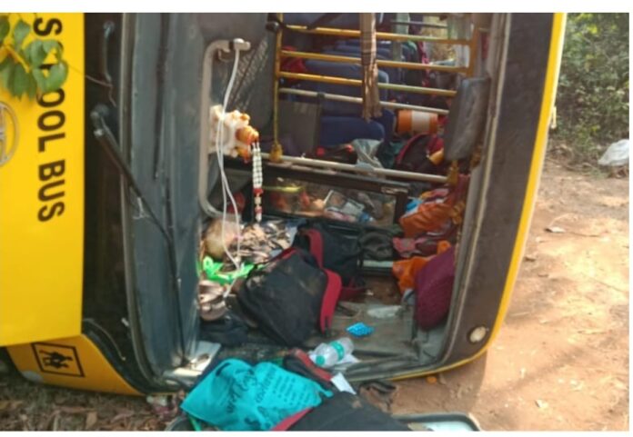 संगमेश्वर:- गणपतीपुळे येथून महाडकडे जाणारी बीड जिल्ह्यातील धारूर येथील शालेय विद्यार्थ्यांची सहल बस मंगळवार 10 फेब्रुवारी रोजी सकाळी सुमारे दहा वाजण्याच्या सुमारास संगमेश्वर तालुक्यातील फुणगूस येथील मुख्य रस्त्यावर भोसलेवाडी परिसरात अपघातग्रस्त झाली. रस्त्याच्या कडेला बस पलटी झाल्याने काही काळ भीतीचे वातावरण निर्माण झाले होते. मात्र सुदैवाने या अपघातात कोणतीही मोठी जीवितहानी झाली नसून केवळ एक-दोन विद्यार्थ्यांना किरकोळ दुखापत झाली आहे.