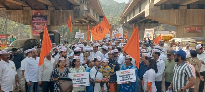 मुंबई-गोवा महामार्गाचे काम गेल्या अनेक वर्षांपासून रखडलेले आहे. याचा निषेध नोंदवण्यासाठी रविवारी (दि. ११ जानेवारी २०२६) सकाळी ११ वाजण्याच्या सुमारास जनआक्रोश समितीच्या कार्यकर्त्यांनी आक्रमक पवित्रा घेतला. आंदोलकांनी पारेख पेट्रोल पंप, संगमेश्वर बाजारपेठ ते संगमेश्वर एस.टी. स्टँड असा विनापरवाना मोर्चा काढला. यावेळी शासनाच्या कामाचा निषेध म्हणून ‘तिरडी यात्रा’ काढण्यात आली.