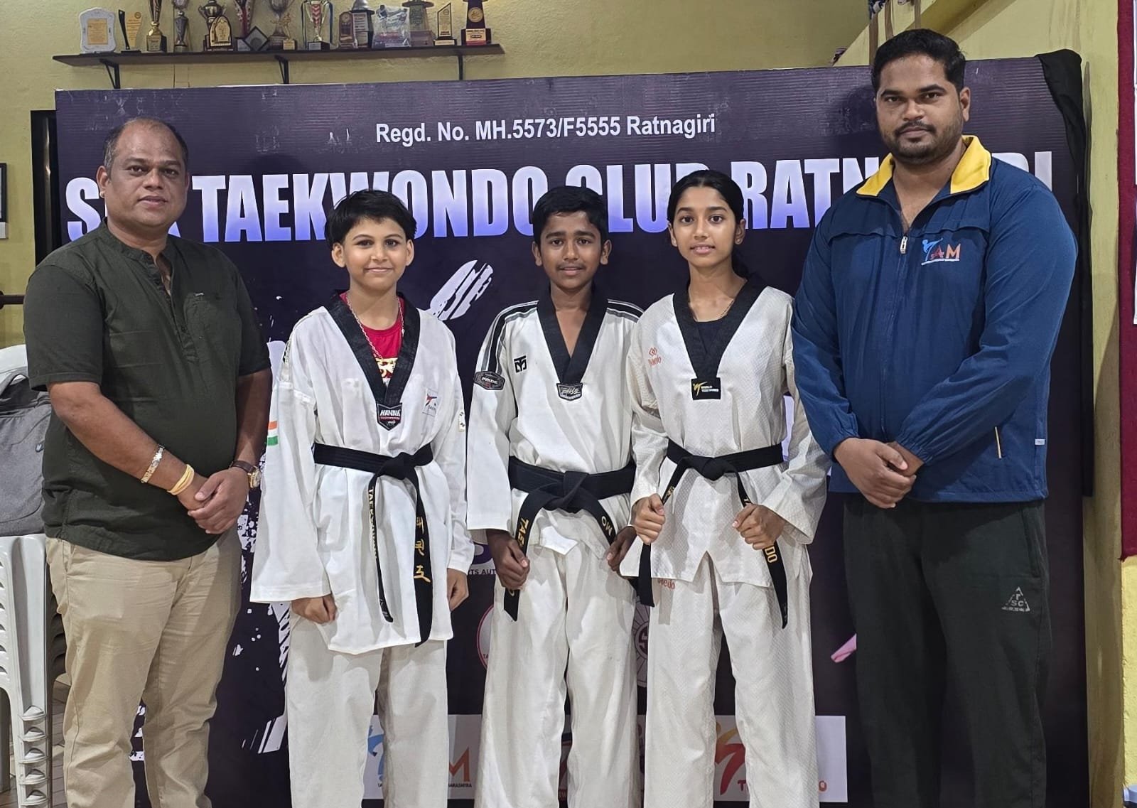 रत्नागिरी:- तायक्वांडो असोसिएशन ऑफ महाराष्ट्रच्या मान्यतेने आणि अहिल्यानगर तायक्वांडो असोसिएशनच्या सहकार्याने आयोजित करण्यात आलेल्या 8 व्या क्यूरोगी व 5 व्या पुमसे राज्यस्तरीय कॅडेट तायक्वांदो स्पर्धेसाठी रत्नागिरीतील चार खेळाडूंची निवड झाली आहे. ही स्पर्धा शिर्डी, जि. अहिल्यानगर येथे आयोजित करण्यात आली आहे.