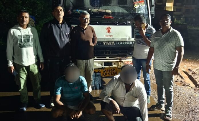पाचल:- रत्नागिरी जिल्हा पोलीस दलाने गोवंश वाहतूक आणि कत्तलींविरोधात मोठी कारवाई केली आहे. स्थानिक गुन्हे अन्वेषण शाखेने अवैध मार्गाने गोवंश वाहतूक करणाऱ्या दोन आरोपींना अटक करून सुमारे १२ लाख रुपयांचा मुद्देमाल जप्त केला आहे.