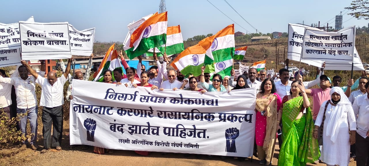 लोटे येथील लक्ष्मी ऑरगॅनिकच्या ‘पीफास’ या उत्पादनसंदर्भात अनेक आक्षेप घेण्यात आले आहेत. सोशल मीडिया आणि माध्यमांमध्ये त्याची चर्चा होत आहे. या पार्श्वभूमीवर काँग्रेसने आंदोलनाची हाक दिली होती. गुरुवारी (दि.8) लोटेतील एक्सल फाटा येथे आंदोलक हातात राष्ट्रध्वज घेऊन सहभागी झाले आणि कंपनी विरोधात जोरदार निदर्शने करण्यात आली. एक्सल फाटा येथून घोषणा देत आंदोलनकर्ते कंपनीच्या प्रवेशद्वारापर्यंत पोहोचले. ‘बंद करा, बंद करा लक्ष्मी ऑरगॅनिक बंद करा’ अशा घोषणा देण्यात आल्या. गुरुवारी सकाळी 11 वा. हा मोर्चा काढण्यात आला. यावेळी कंपनी परिसरात मोठा पोलिस बंदोबस्त होता. खेडचे उपविभागीय पोलिस अधिकारी श्री. सणस यांच्या नेतृत्वाखाली चोख पोलिस बंदोबस्त ठेवण्यात आला होता. माजी खा. हुसेन दलवाई यांनी मोर्चाचे नेतृत्व केले. यामध्ये उत्तर रत्नागिरी जिल्हाध्यक्षा सोनललक्ष्मी घाग, भरत लब्धे, अशोक जाधव, इब्राहिम दलवाई, उल्का महाजन, निर्मला जाधव, नगरसेवक साजिद सरगुरोह, सफा गोठे, मिसबाह नाखुदा, मुजफ्फर सय्यद, सुमती जांभेकर, राजन इंदुलकर, रविना गुजर, राम रेडीज, सुबोध सावंतदेसाई, सतीश कदम, रामदास घाग तसेच संदीप फडकले आदींसह लोटे परिसरातील ग्रामस्थ उपस्थित होते. पोलिसांनी सुरुवातीला प्रवेशद्वारावर आंदोलनकर्त्यांना अडविले. यावेळी कार्यकर्त्यांनी जोरदार घोषणाबाजी केली. बंद बंद करा, लक्ष्मी ऑरगॅनिक बंद करा, कंपनीला टाळे लावला अशा घोषणा देण्यात आल्या. यानंतर आंदोलनकर्त्यांनी कंपनी व्यवस्थापनाशी चर्चा करण्याची मागणी केली. यानंतर पोलिसांनी शिष्टमंडळाला कंपनी कार्यालयात बोलावून घेतले. त्या ठिकाणी कंपनी व्यवस्थापन व आंदोलनकर्त्यांमध्ये चर्चा झाली. यावेळी दलवाई यांनी मोर्चा काढण्यामागच्या भावना व्यक्त केल्या. हा मोर्चा म्हणजे कोकणच्या जीवनमरणाचा प्रश्न आहे. पीफास उत्पादन येथे होत असल्याने मानवाला धोका आहे. खेड, लोटे परिसरातील अशा अनेक कंपन्या आहेत. त्यांनी सांडपाणी सोडण्यासाठी बोअर मारल्या आहेत. परिसरातील नद्या, नाले प्रदूषीत झाल्या आहेत. पीफासमुळे अनेक रोग उद्भवत आहेत. तसे अहवाल आहेत. त्यामुळे हे उत्पादन बंद करावे, अशी मागणी केली. यावेळी कंपनी व्यवस्थापनाकडून उपस्थित अधिकारी श्री. पाटोळे तसेच मुंबई येथून आलेले अधिकार्यांनी कंपनीच्या उत्पादनाबाबत माहिती दिली. मात्र, त्या बाबत उपस्थित आंदोलनकर्त्यांचे समाधान झाले नाही. अधिकारी कंपनीचीच बाजू मांडणार, अशी भूमिका घेत आंदोलनकर्ते उदय घाग, भरत लब्धे, अशोक जाधव, पंकज दळवी यांनी आक्षेप घेत या कंपनीत घडलेल्या दुर्घटनांबाबत विषय मांडला. राजू आंब्रे, महेश गोवळकर व अन्य स्थानिक ग्रामस्थांनी कंपनीत घडलेल्या अपघाताबाबत माह