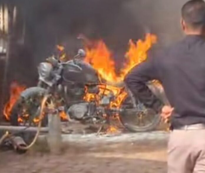 रत्नागिरी:- शहरात सध्या इलेक्ट्रिक गाड्यांच्या सुरक्षेचा प्रश्न पुन्हा एकदा ऐरणीवर आला आहे. रत्नागिरी येथील साळवी स्टॉप परिसरात असलेल्या ‘डॅफोडिल हाईट्स’ या इमारतीच्या पार्किंगमध्ये उभ्या असलेल्या एका इलेक्ट्रिक दुचाकीने अचानक पेट घेतल्याची धक्कादायक घटना घडली आहे. या आगीत दोन दुचाकींचे प्रचंड नुकसान झाले असून परिसरात काही काळ भीतीचे वातावरण पसरले होते.