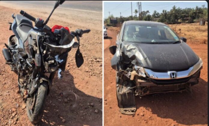 प्रतिक संदीप जोशी (वय २४, रा. आंजणारी, ता. लांजा) आणि त्यांची पत्नी सौ. स्नेहल प्रतिक जोशी अशी जखमींची नावे आहेत. हा अपघात मंगळवारी सकाळी सुमारे सात वाजण्याच्या सुमारास हातखंबा रस्त्यावर घडला. पोलिसांकडून मिळालेल्या माहितीनुसार, प्रतिक जोशी हे दुचाकी (क्र. एमएच-०८ बीएफ ६६१५) वरून पत्नी स्नेहल यांच्यासह आंजणारी येथून रत्नागिरी-कुवारबाव दिशेने येत होते. याच वेळी कळंझोडी येथून रत्नागिरीकडे जाणारी मोटार (क्र. एमएच-०८ एजे २३०६) आणि दुचाकी यांच्यात हातखंबा येथे जोरदार धडक झाली. धडकेचा वेग इतका प्रचंड होता की दुचाकीस्वार दोघेही रस्त्यावर फेकले गेले.